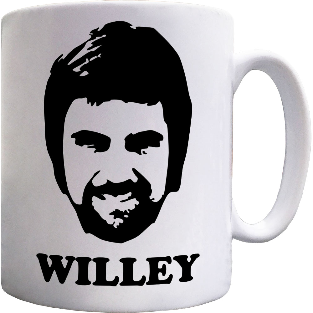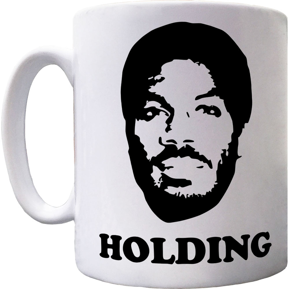 Michael Holding on one side, Peter Willey on the other. "The batsman's Holding, the bowler's Willey" - printed on a ceramic mug.